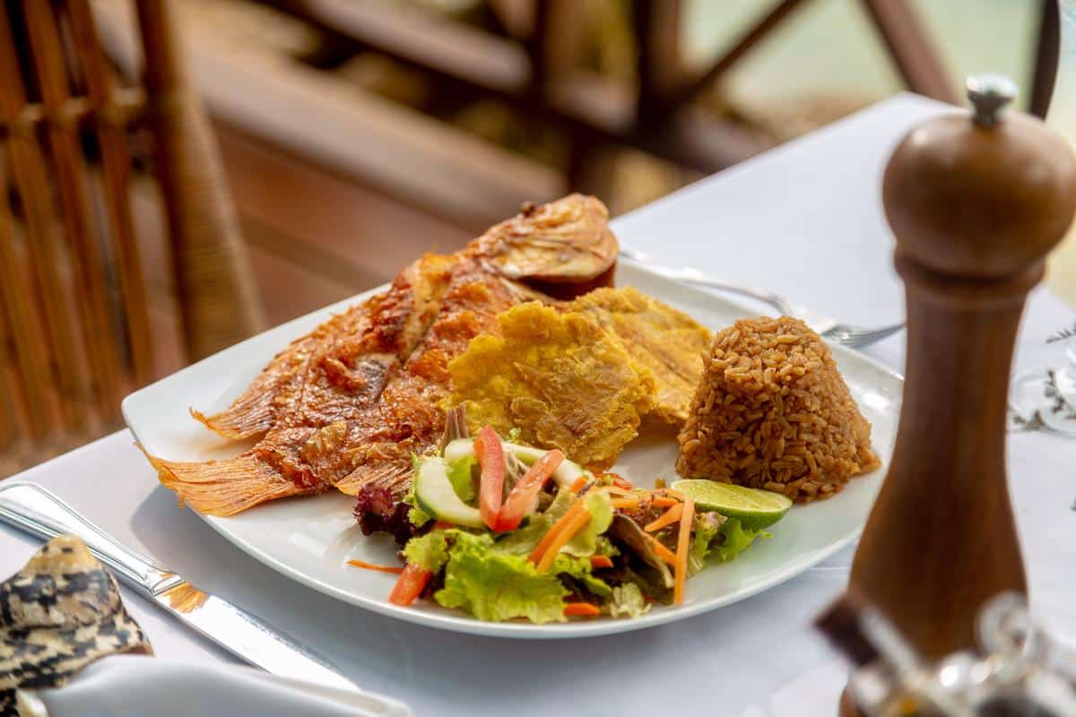 Todo acompañado de arroz con coco titoté, patacones y ensalada verde.