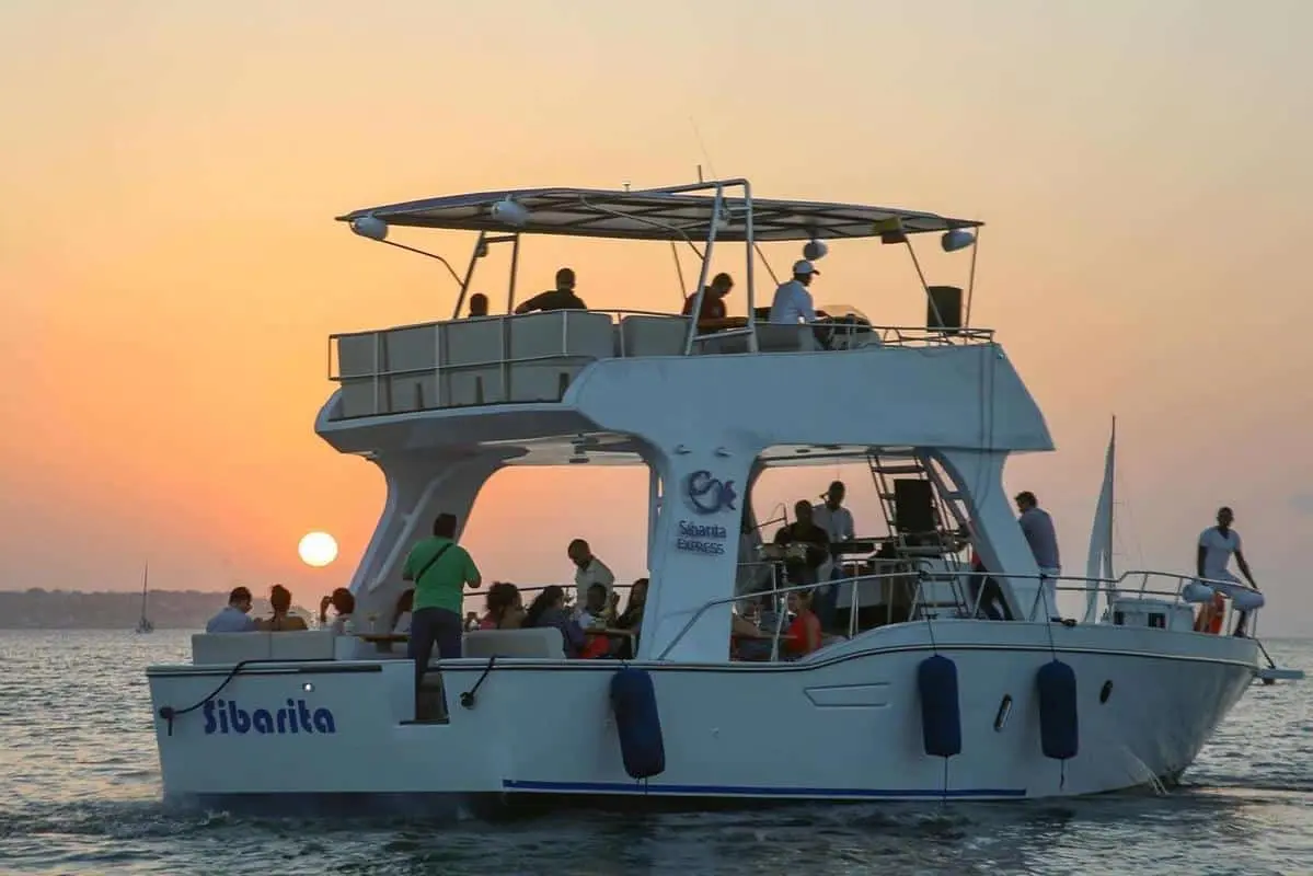 El Atardecer Express es un paseo en barco de aproximadamente 2 horas por la Bahía de Cartagena, diseñado para disfrutar el espectáculo natural del atardecer acompañado de bebidas refrescantes y un ambiente agradable.