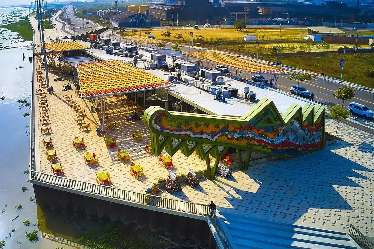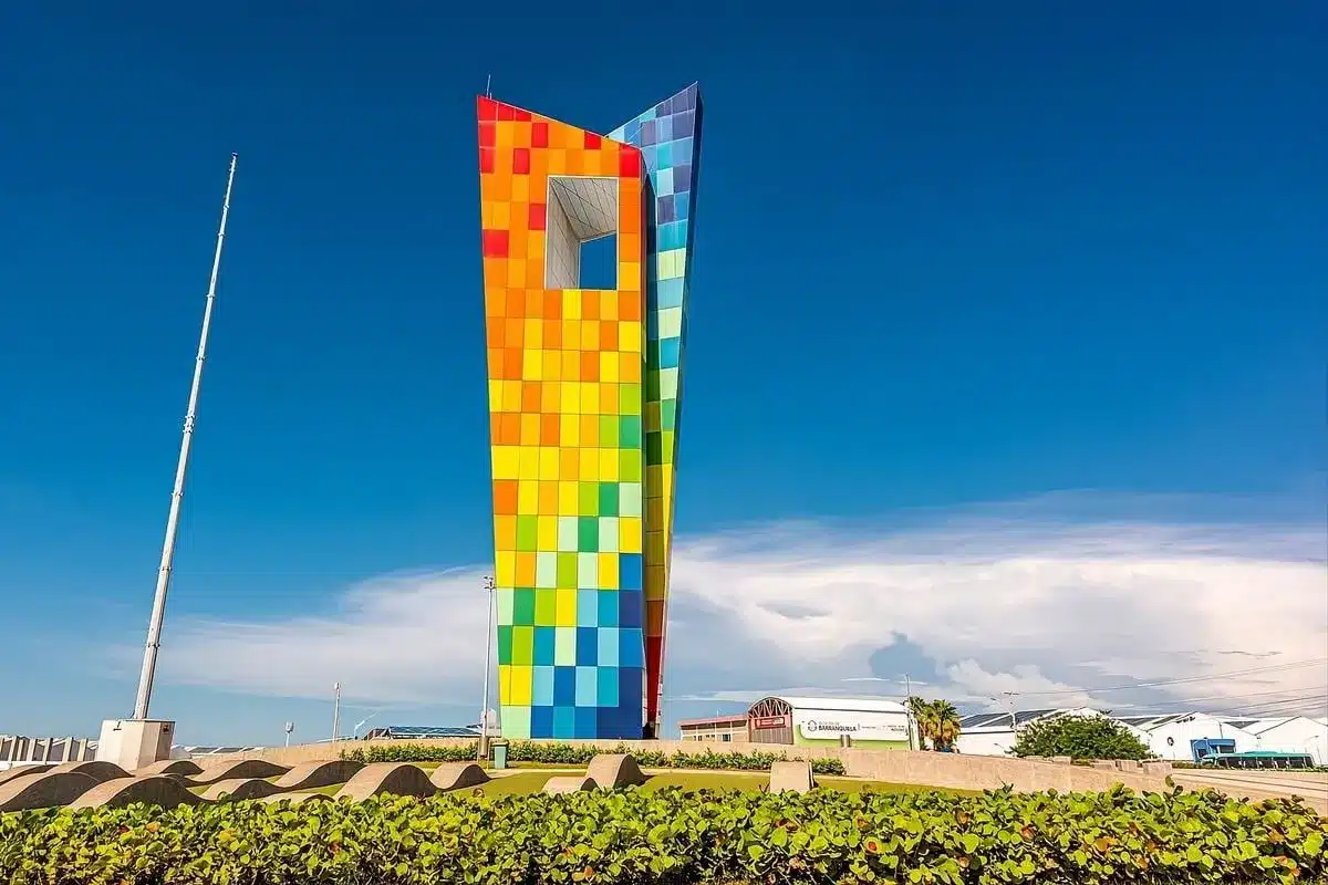 Uno de los momentos más esperados del recorrido es la visita a la Ventana al Mundo, una imponente escultura multicolor de más de 45 metros de altura que simboliza la apertura de Barranquilla hacia el mundo. Este monumento, convertido en emblema de la ciudad, ofrece un espectáculo visual tanto de día como de noche.